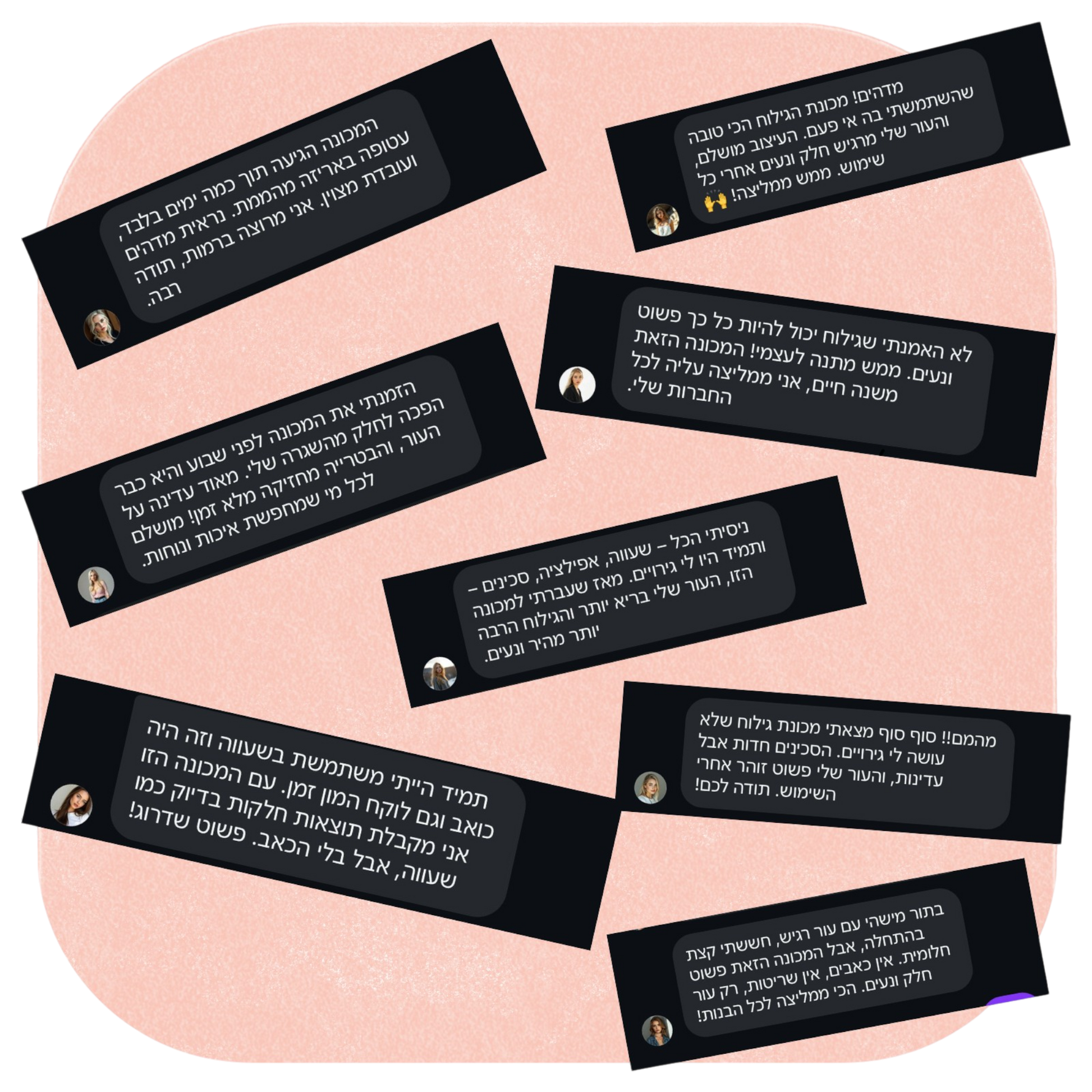 אספנו לכם נתונים מעניינים ממה שהלקוחות שמשתמשות במכונת גילוח שלנו אומרות❤️